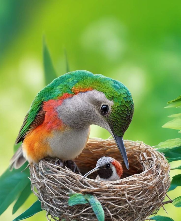 Courtship among Bee Hummingbirds is as dazzling as their plumage. The male ascends high into the sky before diving sharply past the female in a display of speed and precision. He flashes his ruby-red throat feathers in the sunlight, a signal of both beauty and stamina. Females build tiny cup nests from plant fibers and spider silk, no larger than a coin, where they lay two eggs the size of peas. The chicks hatch blind and helpless, yet within weeks are ready to take to the air, following in their parents’ blurred wingbeats.