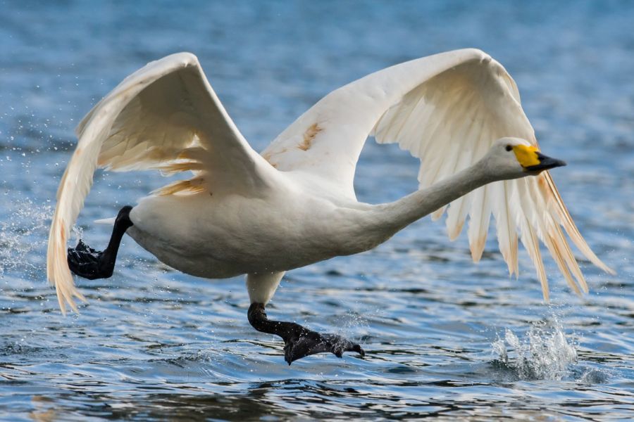 Whooper swans have strong chest muscles and large wings. Their wingspan can reach up to 10 feet wide.