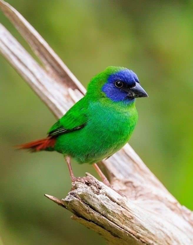 The Pin-tailed Parrotfinch (Erythrura prasina) is among Asia’s most dazzling finches, shimmering in emerald green, cobalt blue, and crimson red. The male’s long, slender scarlet tail — like a spark trailing in the air — gives the bird both its name and its unforgettable elegance.