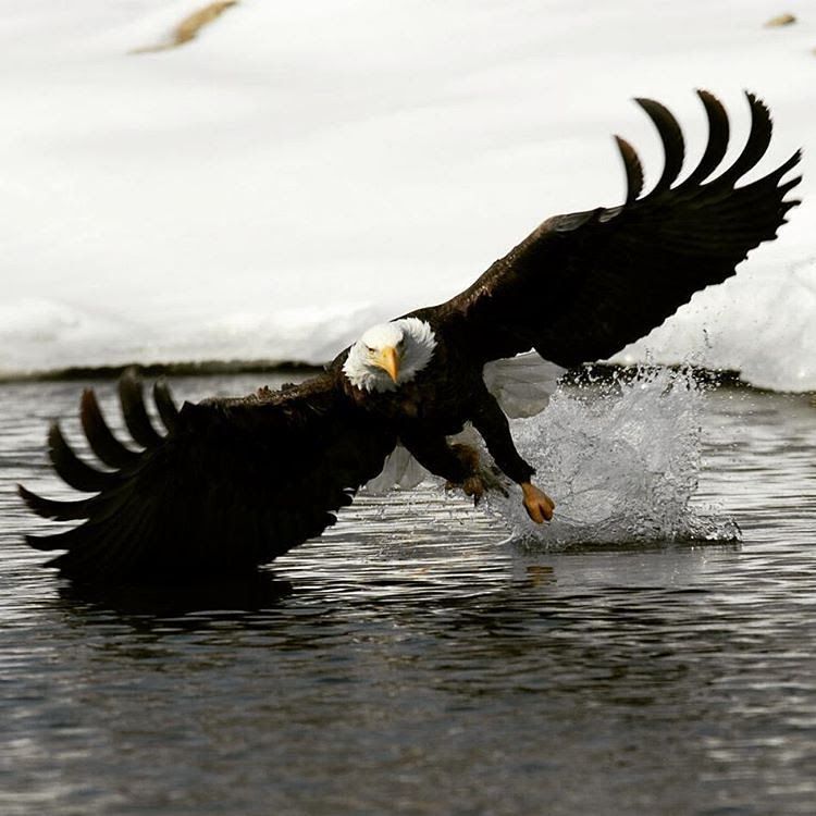Fish form the core of the Bald Eagle’s diet, and its hunting displays are spectacles of strength and precision. Perched on tall trees or soaring high above rivers and coasts, the eagle spots prey with its extraordinary vision. With a swift dive, it snatches fish from just below the surface, carrying them in powerful talons designed to grip slippery catches. Opportunistic by nature, it also steals from other birds, scavenges carrion, and hunts waterfowl, showcasing both adaptability and dominance.