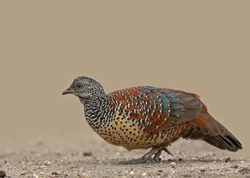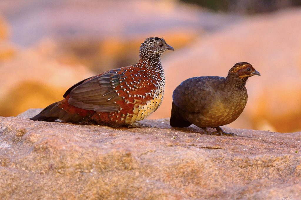 Morning breaks over India’s rocky hillsides, where thorny scrub and scattered boulders glow in amber light. From the shadows, a small, plump bird emerges, its feathers dappled like fragments of mosaic tile. With a sudden flick, it reveals flashes of chestnut, white, and black, while its strong red legs grip the stony ground. The chuk-chuk-chuk call of the Painted Spurfowl drifts across the ravine, announcing the presence of one of the Deccan Plateau’s most striking yet secretive residents.